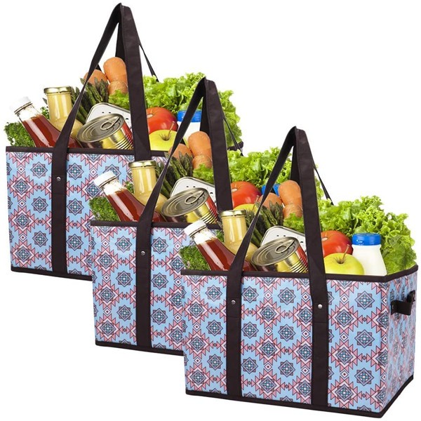 - They fold up flat and tidy for easy storage in your car or kitchen drawer. Rigid structure keeps the bags sturdy and stay in place so nothing slides around in your car. Staying open and upright in your cart and at the checkout makes the loading and unloading groceries easily.